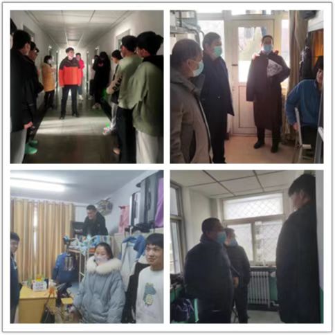领导班子成员按照各自所包联的学生公寓,带领相应包联楼层、宿舍的各级网格长,在辅导员、班主任老师的陪同下深入学生宿舍。院党委书记罗建国、院长李京阳、院党委副书记史瑞根、副院长徐鹏分别带队下沉文瀛17、文韬1、文澜3、文瀛4号公寓,30余名在校专业教师、辅导员和班主任老师到不同宿舍与同学们进行了亲切交流,在谈心交流中了解掌握学生思想动态,增强学生疫情防控和个人防护意识,帮助解决学生离校返乡过程中的实际困难,在仔细查看中消除学生离校前的安全隐患。