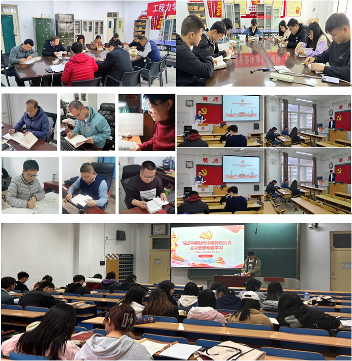 党委5个党支部在党建办公室、教室、办公室等地方,通过党支部书记领读、全体党员轮流朗读、党小组学习、党员自学的方式学习了《习近平新时代中国特色社会主义思想专题摘编》中“新时代中国特色社会主义思想的精神实质和丰富内涵”,重点学习了新时代中国特色社会主义思想的“十个明确”、“十四个坚持”、“十六个方面成就”等内容。
