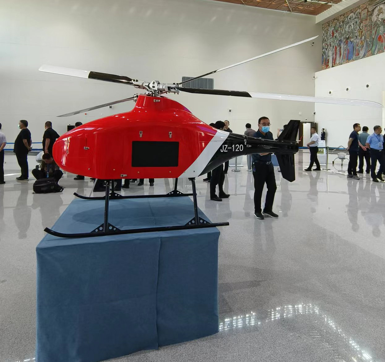 产学研项目交叉双旋翼复合推力尾浆无人直升机展台受到现场嘉宾的广泛关注,院长李京阳现场详细介绍了JZ-120交叉双旋翼无人直升机产品的飞行性能、应用场景、技术创新、实战应用情况等,得到嘉宾充分肯定并寄予期望。