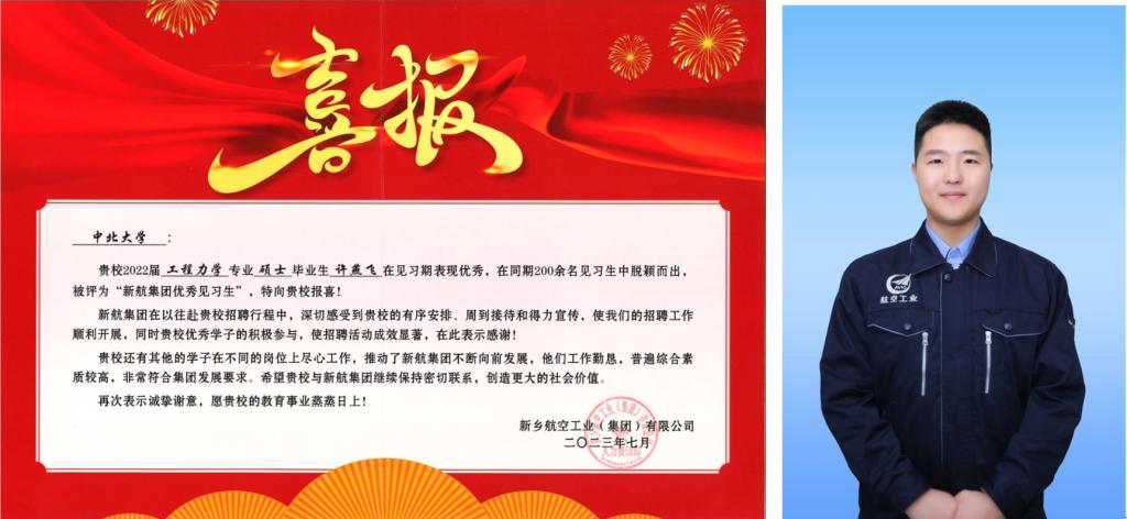 2022届工程力学专业硕士毕业生许燕飞在见习期表现优秀,在同期200余名见习生中脱颖而出,被评为“新航集团优秀见习生”,特向av影片