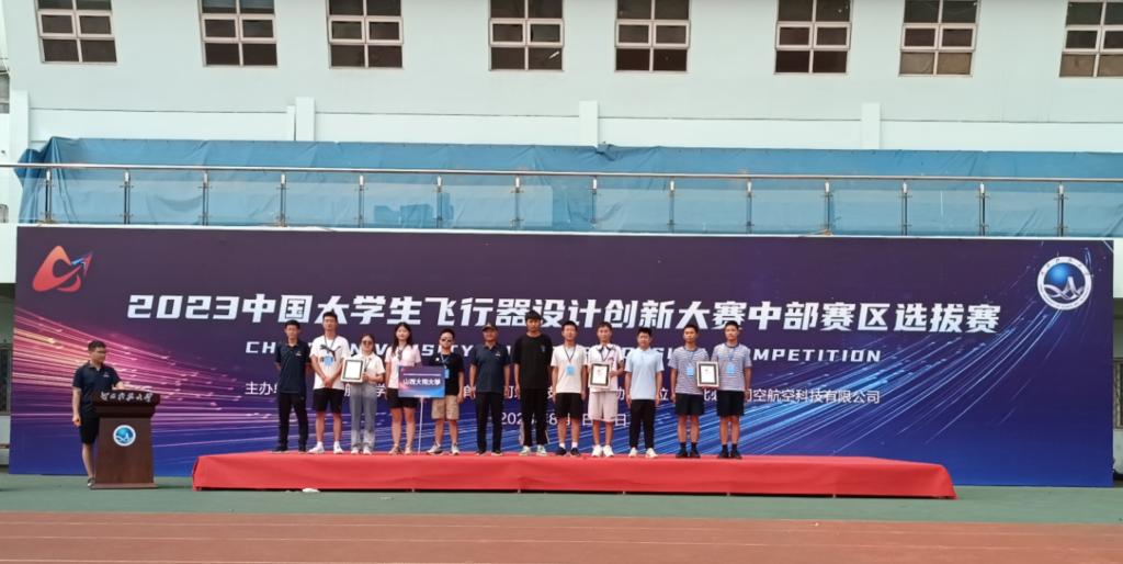 郝文乾副教授带队,余琛、王泽祥、陈飞、刘卓然、朱骁同学组成的2支参赛队伍在“电动滑翔机控制飞行”项目中从中部赛区21支队伍中脱颖而出,经过2天的艰苦比拼,团队成员力压各强劲对手,包揽了“电动滑翔机控制飞行”项目的冠军(王泽祥、陈飞组)、亚军(刘卓然、朱骁组)并获得团体冠军的优异成绩。其中王泽祥、陈飞组获得两轮满分2000分的优异成绩,打破了全国赛史记录!