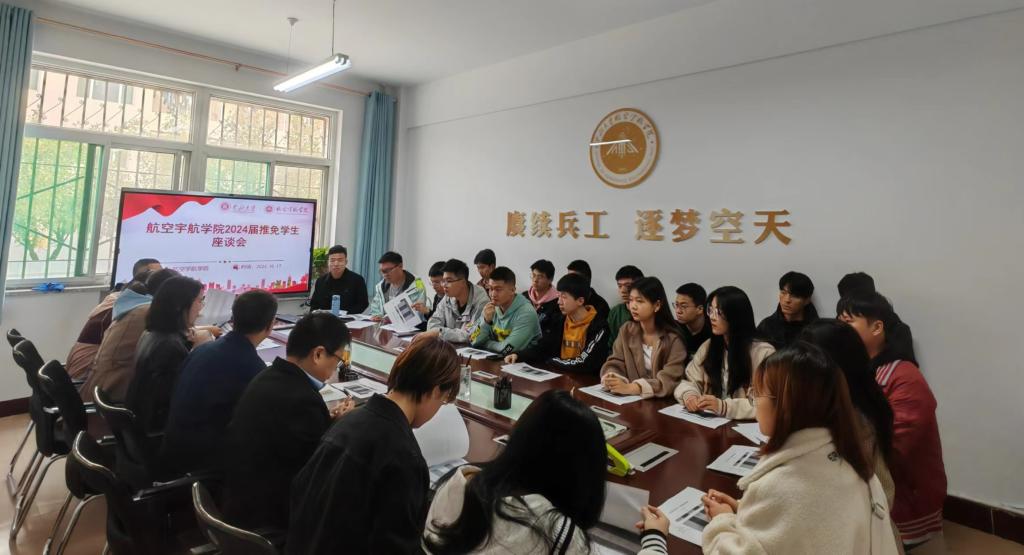 2024届推免学生座谈会。全体学生工作人员,18名推免学生参加会议,会议由党委副书记史瑞根主持。