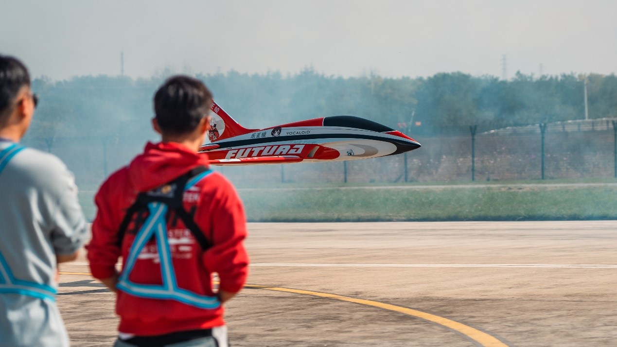学生王泽祥受邀参加了大会的飞行表演,在专业日的开幕式上,王泽祥同学操纵一架22kg级别涡喷运动飞机与两架3D特技飞机进行拉烟编队飞行,在空中留下了美丽的航迹,赢得现场掌声一片;在公众开放日上,王泽祥同学的涡喷单机特技飞行和3D特技飞机四机编队表演更是成为全场焦点,赢得现场观众一致好评!