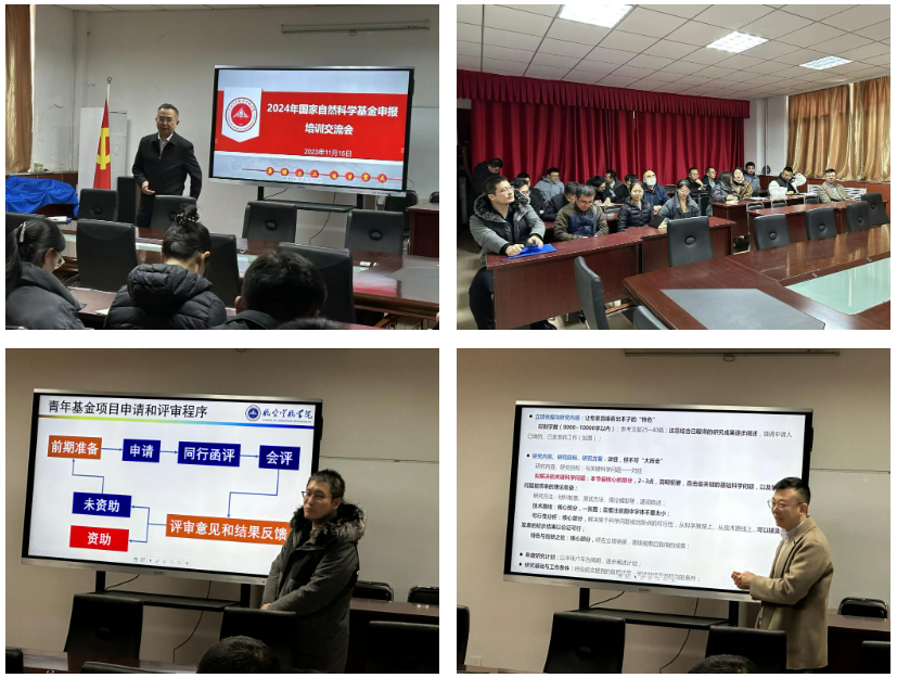 2024年度国家自然科学基金申报培训交流会在10号楼一层培训室召开,会议由学院副院长徐鹏主持,45岁以下青年教师参会进行学习交流。
