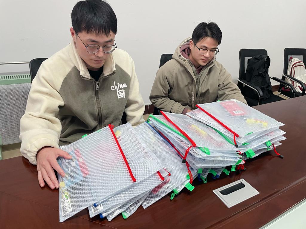 “考研助力包”内包含中性笔、涂卡笔、橡皮、小刀、胶棒、尺子四件套和档案袋,学院为考研学生“一站式”配齐全部考场文具,切实为考研学生提供便捷。学院辅导员、毕业班班主任为考研学生送去“考研助力包”,并贴心送上祝福,让考研学子在凛冽的冬日感受来自学院的温暖与抚慰。