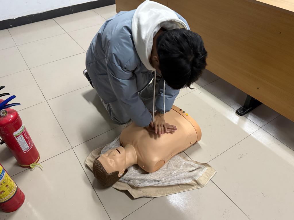 本次实训考核活动分为四个部分:宿舍防火、灭火器使用、心肺复苏救护训练和实景逃生演练。学生们在老师的指导下,通过视频学习与实际操作相结合,学习并掌握了这些关键的安全技能。