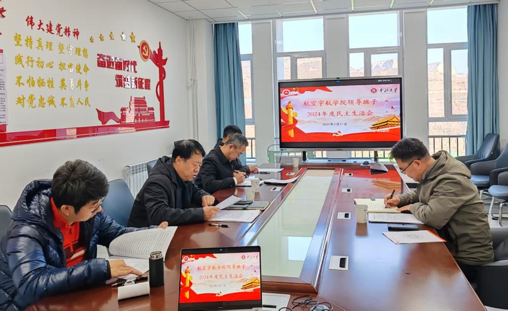 2024年度领导班子民主生活会方案》,介绍了学院领导班子成员深入学习研讨、广泛征求意见、开展谈心谈话等情况,通过认真撰写领导班子对照检查材料和个人发言提纲,为开好民主生活会奠定了基础。接着他代表学院领导班子做了对照检查,详细汇报了2024年度学院对照“四个方面”检查存在的问题,结合“反面”案例深入剖析了问题成因,针对上次民主生活会提出的问题并结合今年的改进情况,提出了2025年整改措施。随后,每位班子成员紧密联系个人工作实际,按照要求作个人对照检查发言,每个同志汇报后,其他成员结合他的思想、学习、工作实际等方面提出了批评性意见,每位同志均表示全面接收,在后续的工作中认真吸收、积极改正、全力实践、全员协作,为学院工作上一个新台阶而努力。