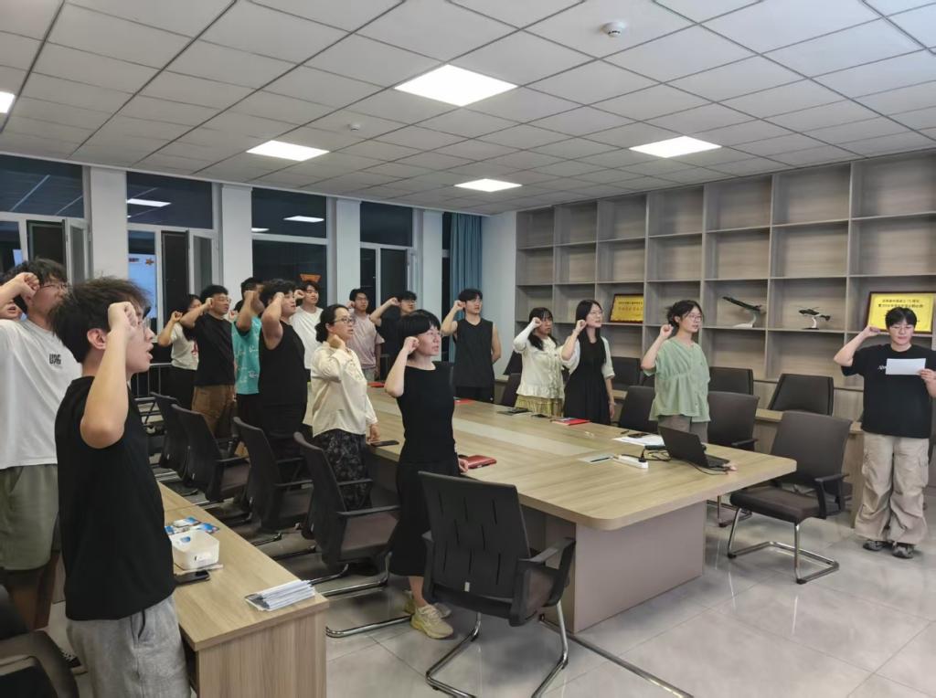 活动伊始,在刘可同学带领下,全体党员高举右拳,重温入党誓词。“我志愿加入中国共产党……随时准备为党和人民牺牲一切,永不叛党!”铿锵有力的誓言响彻会场,字字千钧,不仅是对初心的回望,更是对使命的承诺。毕业生党员们眼神坚定,这铮铮誓言将激励他们在未来的道路上永葆党员本色,勇担时代重任。