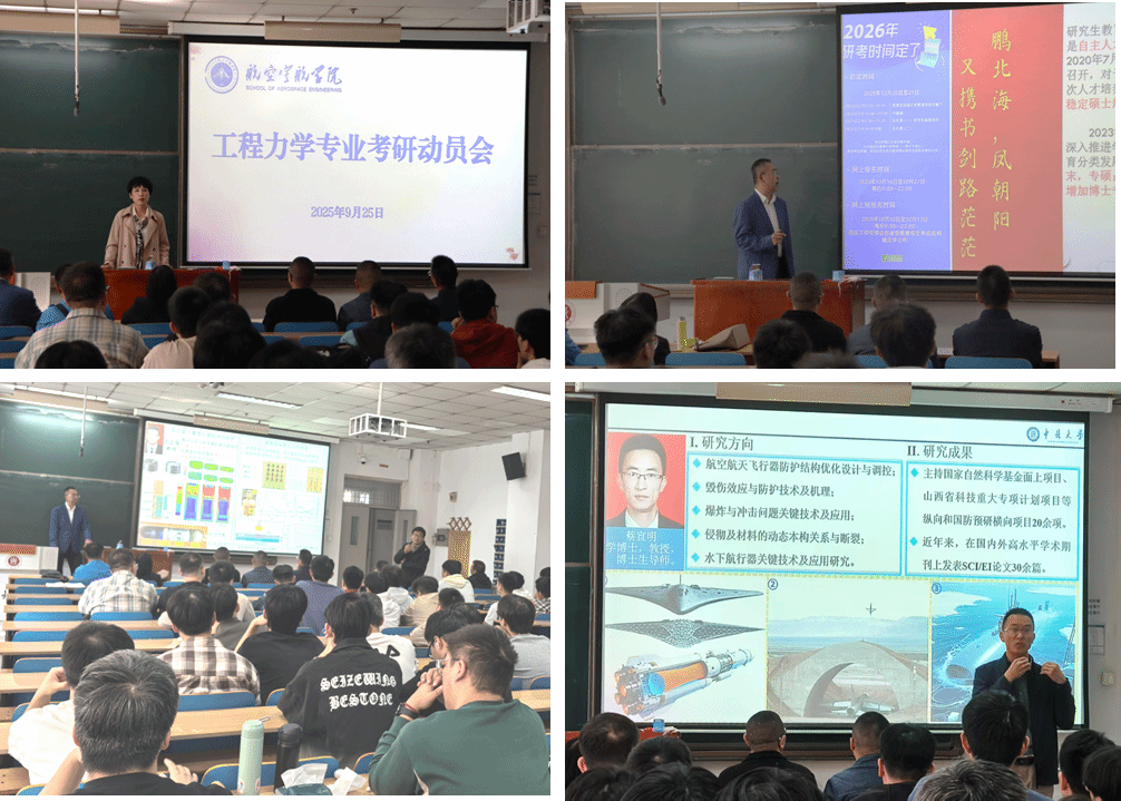 在导师介绍环节,徐鹏、蔡宣明、范志强、高玉波、韩文梅、李海涛、韩文举、戚云超、武晋文等近十位导师依次登台,就研究方向、团队成果与培养模式进行系统介绍,涵盖爆炸冲击动力学、飞行器防护、应力波传播、材料动态力学、岩石断裂控制、振动能量收集等多个前沿领域,充分展示本学科深厚的师资力量与科研平台。