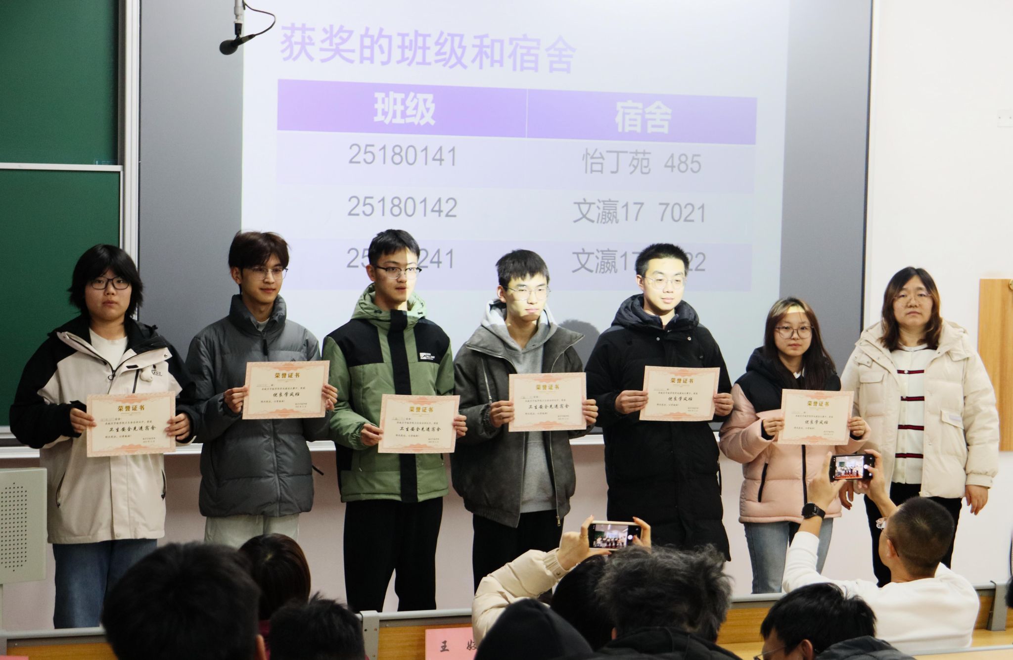 随后,院学生会权益生活部负责人详细总结了学风建设月期间开展的学风督查等系列活动,以具体数据直观呈现出活动覆盖的范围和成效。大会对评选出的“优良学风班”和“卫生安全先进宿舍”进行表彰,段志薇老师为获奖集体代表颁发证书,充分发挥先进典型的示范引领效应。