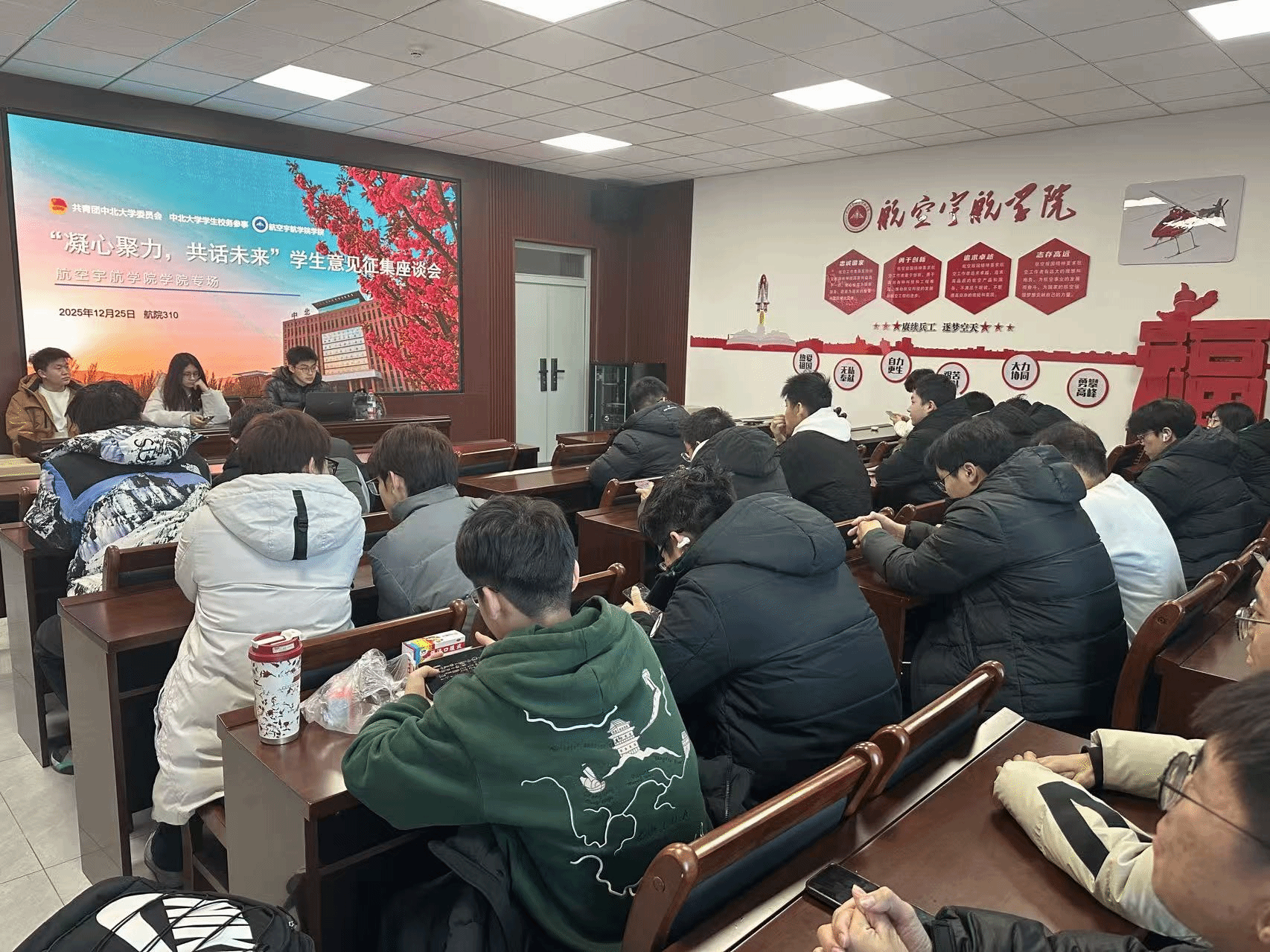 “凝心聚力,共话未来”学生意见征集座谈会在学院310会议室顺利召开。本次会议由校参郭晋恺主持,校学生会主席宋嘉敏、院学生会主席寇晋邦及学院全体班级班长齐聚一堂,共商校园建设发展良策。
