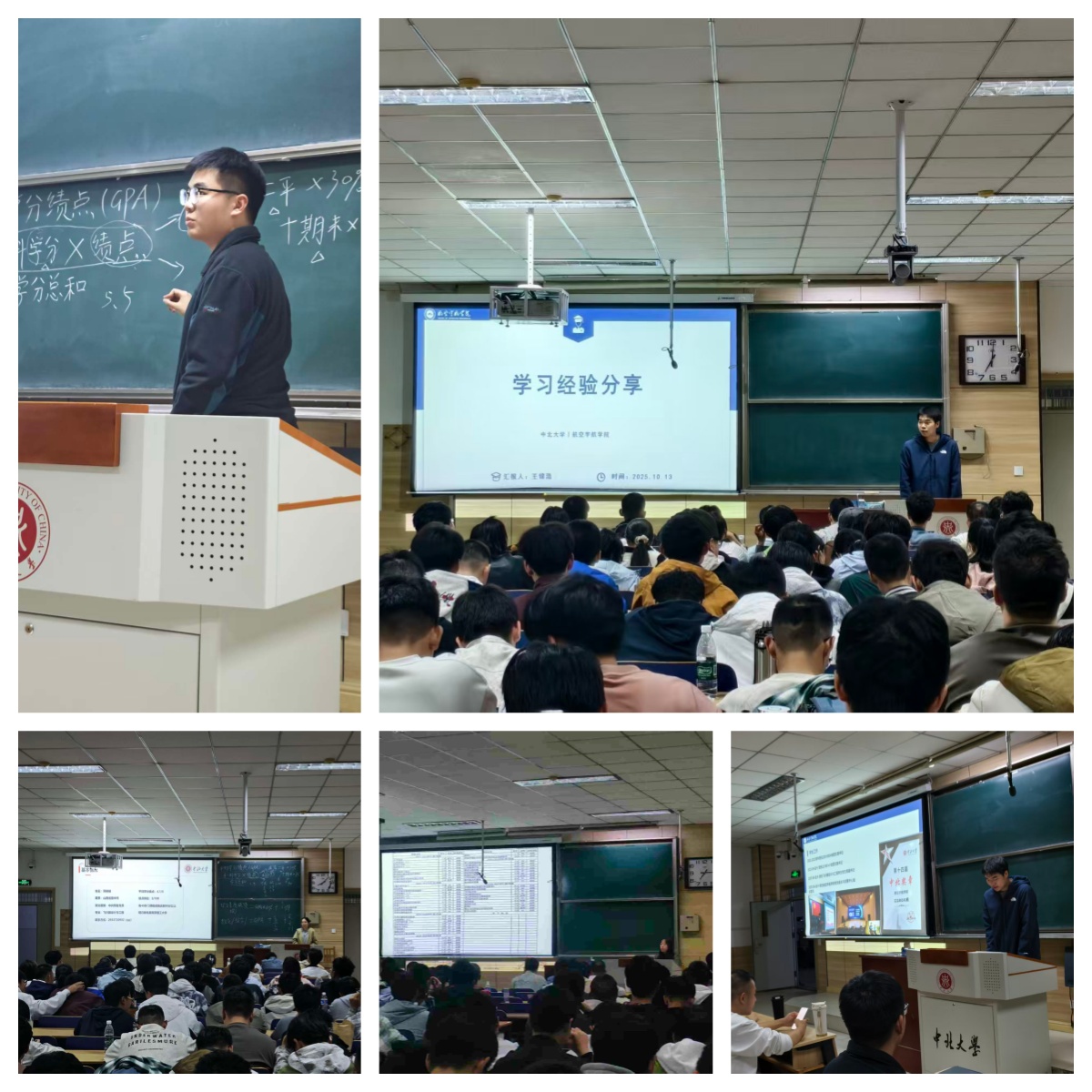 为帮助2025级新生更好地适应大学学习节奏,科学规划学业生涯,10月13日晚,飞行器设计与工程学生党支部于09203H精心组织了一场新生学习经验分享会。本次会议特邀已成功取得推荐免试研究生资格的王锦浩、刘畅、马尚政、邓晓婧同学担任主讲,为初入大学校园的学子们传经送宝,现场座无虚席,气氛热烈。