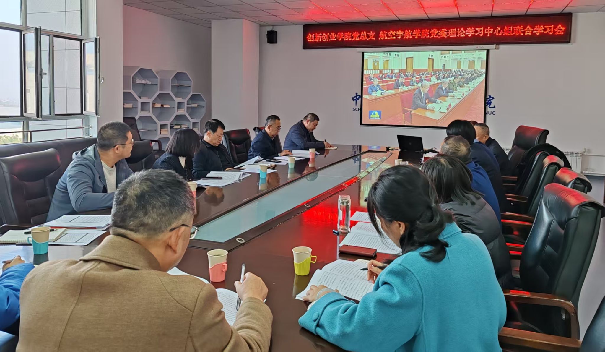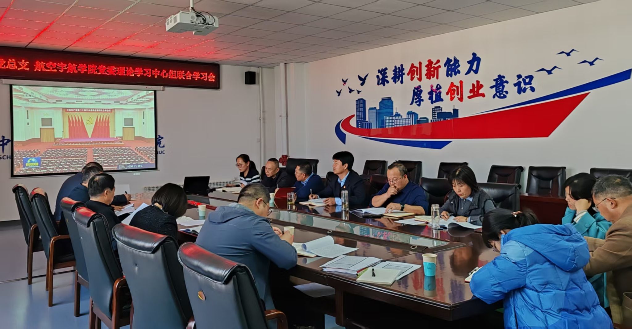 党委与创新创业学院党总支理论学习中心组开展联学,高春强同志主持本次会议。