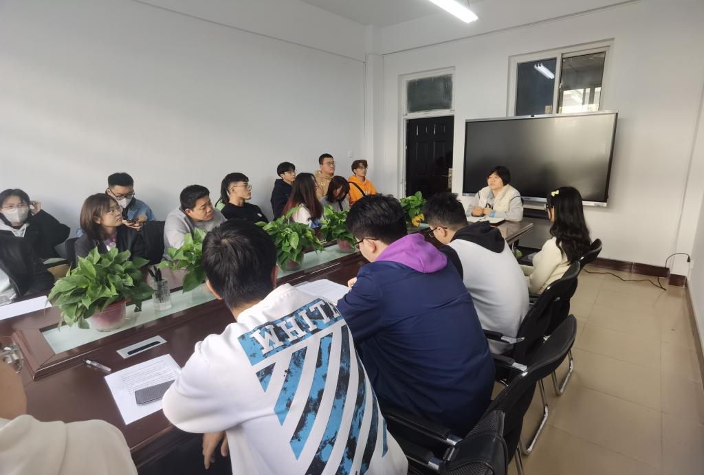 会议室召开新学期团学工作会议,会议由段志薇老师主持,团学组织部长及以上学生干部参加会议。