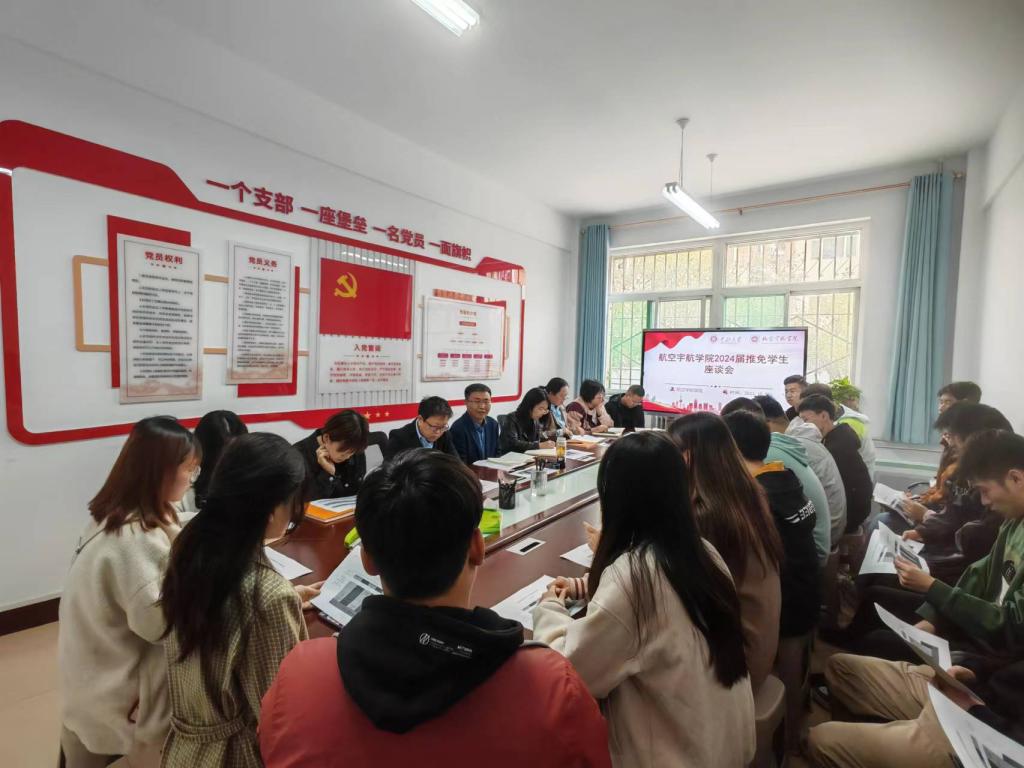2024届推免学生座谈会。全体学生工作人员,18名推免学生参加会议,会议由党委副书记史瑞根主持。