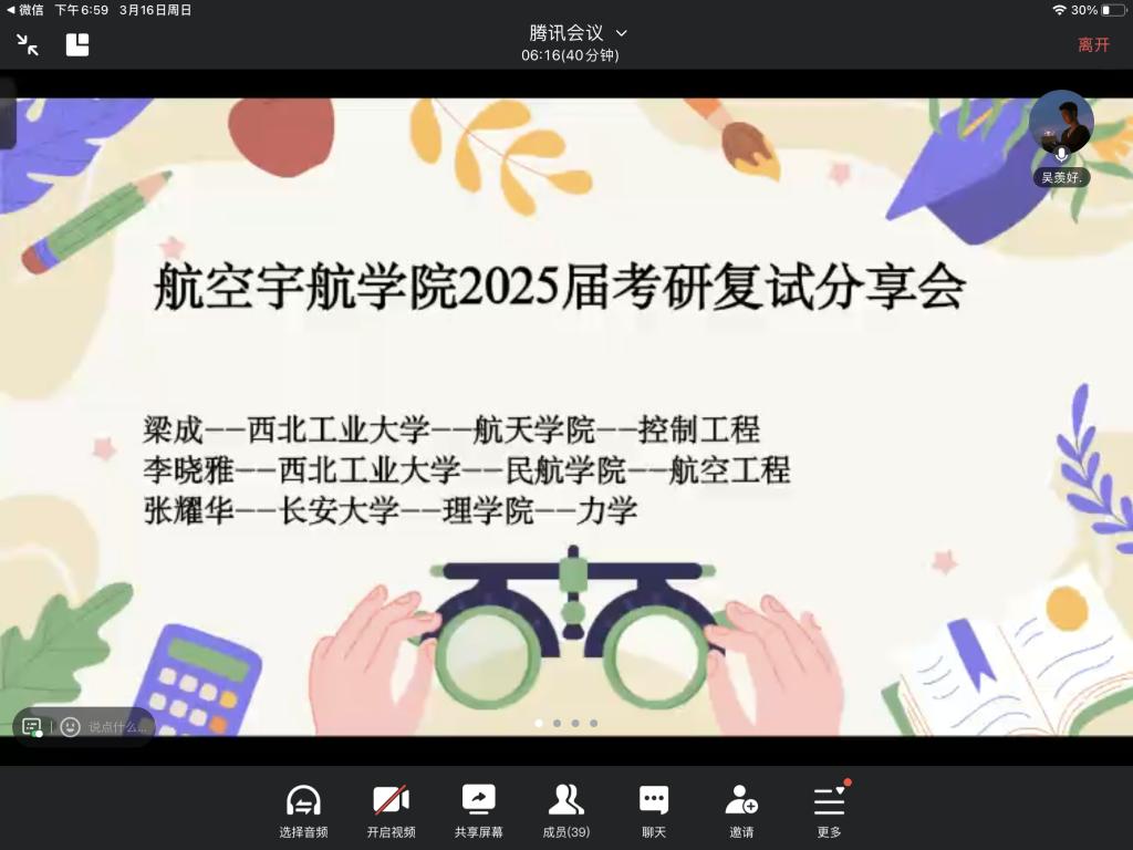 通过腾讯会议平台开展了考研复试分享会,吸引了众多备考学子参与,现场气氛热烈。