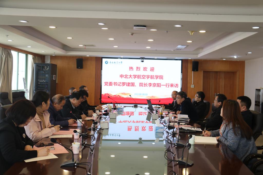 3月2日上午av影片 党委书记罗建国、院长李京阳带队一行7人到南昌航空大学考察调研,在南昌航空大学航空宇航学部常务副部长卢百平的陪同下,学院一行老师参观了微小发动机实验室、S栋室内机库、增材制造中心、航空宇航科学与技术成果展厅以及航空构件先进介质成型技术实验室。