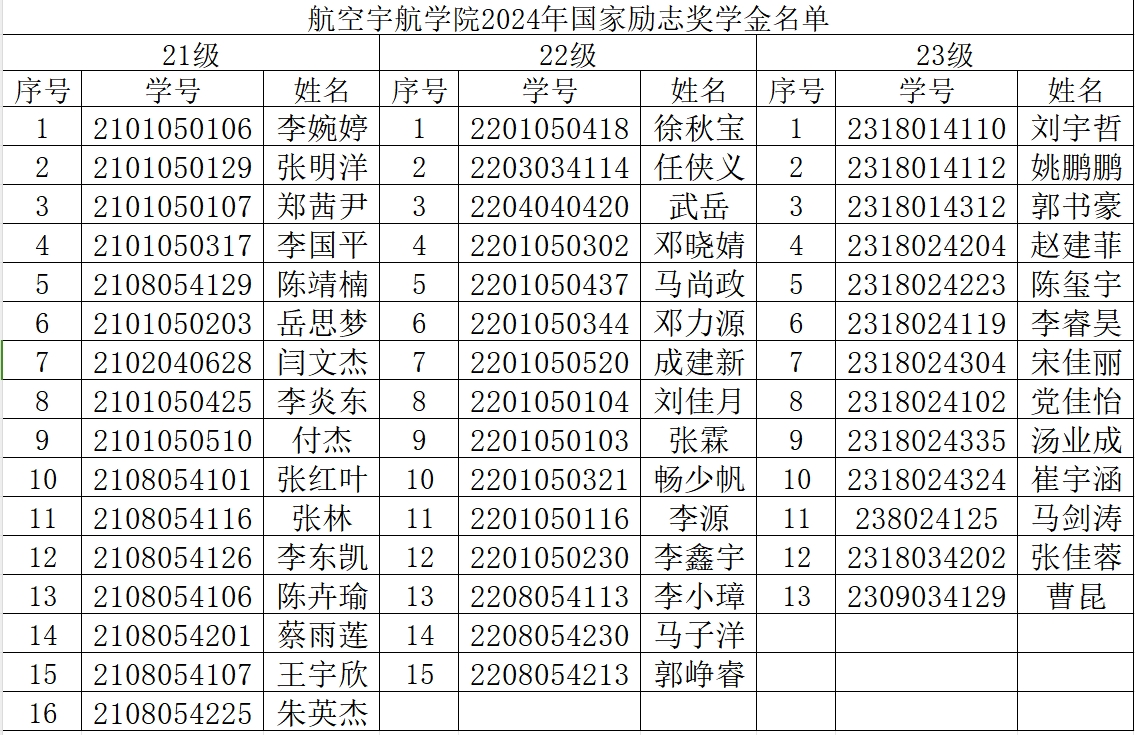 各班级成立了班级国家励志奖学金评议小组,开展了国家励志奖学金评议工作。依据学校分配名额,经学生个人申请、班级评议、班级公示、学院评议,最终推选出44名学生参与国家励志奖学金评选申报,推荐名单如下: